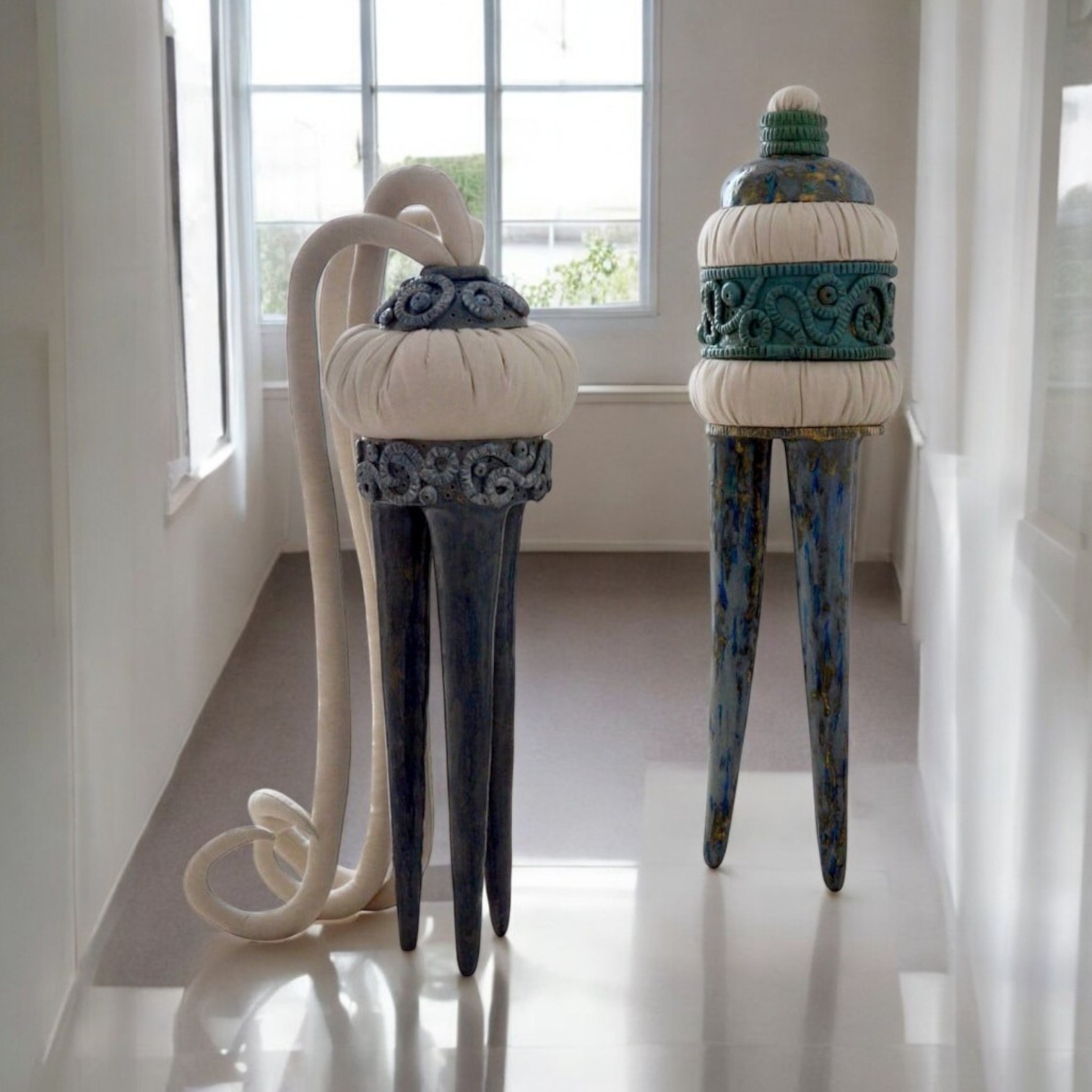 En 2013, la galerie Le parcours de l’art à Avignon accueillait Contentions contenues, une exposition de Frédérique Fleury mêlant céramique, textile et matériaux bruts dans un univers à la fois sensuel et dérangeant.