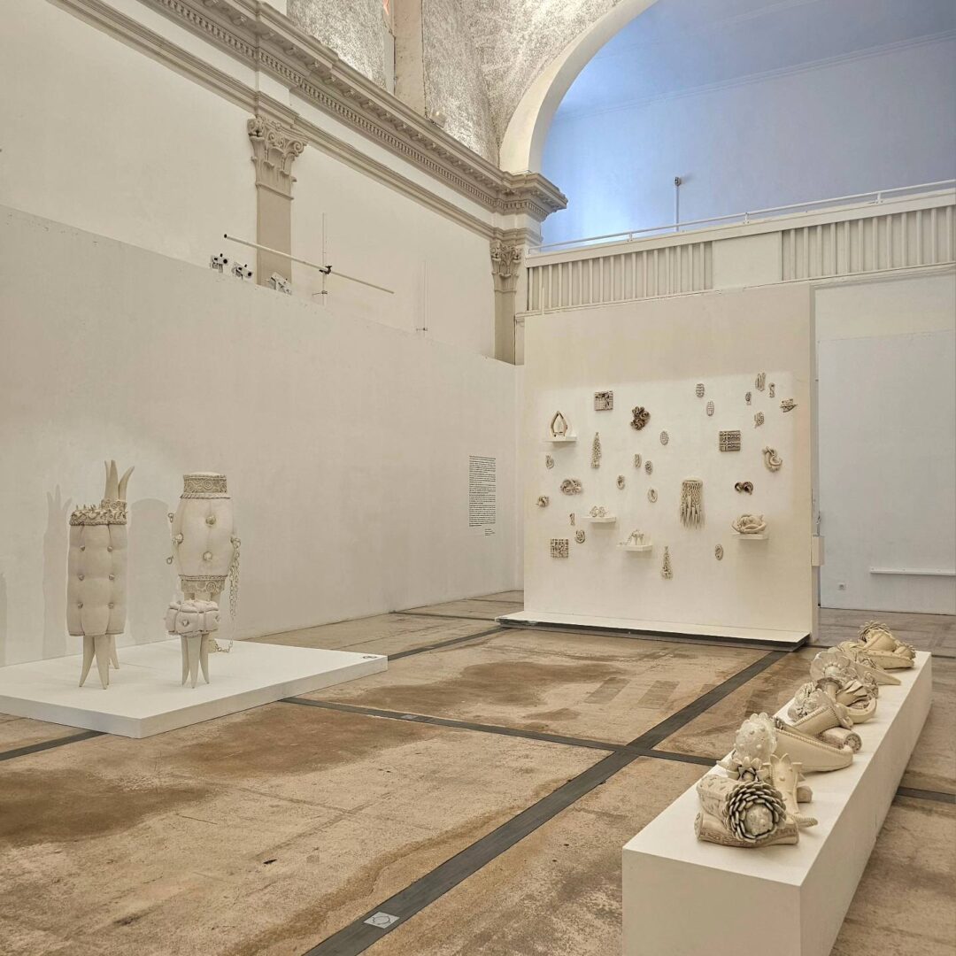 « Mon vocabulaire pictural s’est établi assez tôt dans mon parcours : dès les Beaux-arts j’ai beaucoup joué avec le thème de l’ornement. J’ai choisi d’aller le plus loin possible dans cette direction, jusqu’à ce que cet ornement fasse œuvre. J’aime beaucoup créer des pièces hybrides, en céramique, papier ou textile, travailler sur des matériaux antinomiques : le cuit/le cru, le dur/le souple, le brut/l’ouvragé… ».